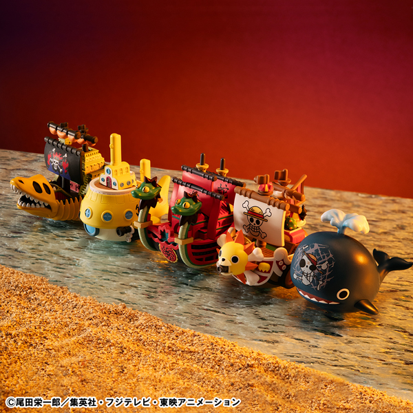 第二弾には巨大なアイランドクジラのラブーンをはじめ、サウザンド・サニー号(ガオン砲Ver.)、九蛇海賊団のパフューム遊蛇号、ハートの海賊団のポーラータング号、キッド海賊団のヴィクトリアパンク号をラインナップ。