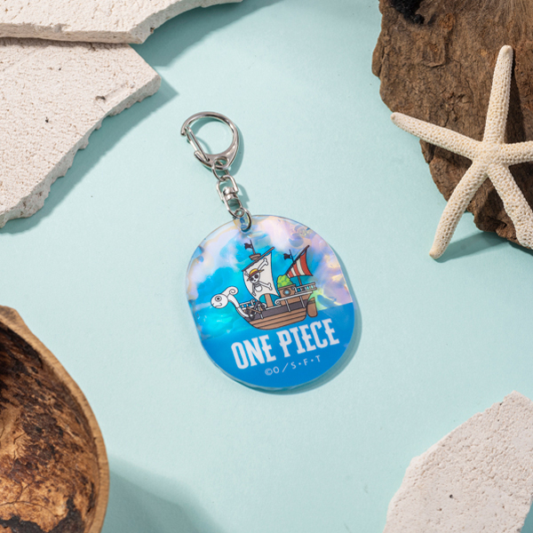 オーロラカラーが可愛い!水面のようなデコボコ仕様で、海の上を走っているメリー号を表現したアクリルキーホルダーです。